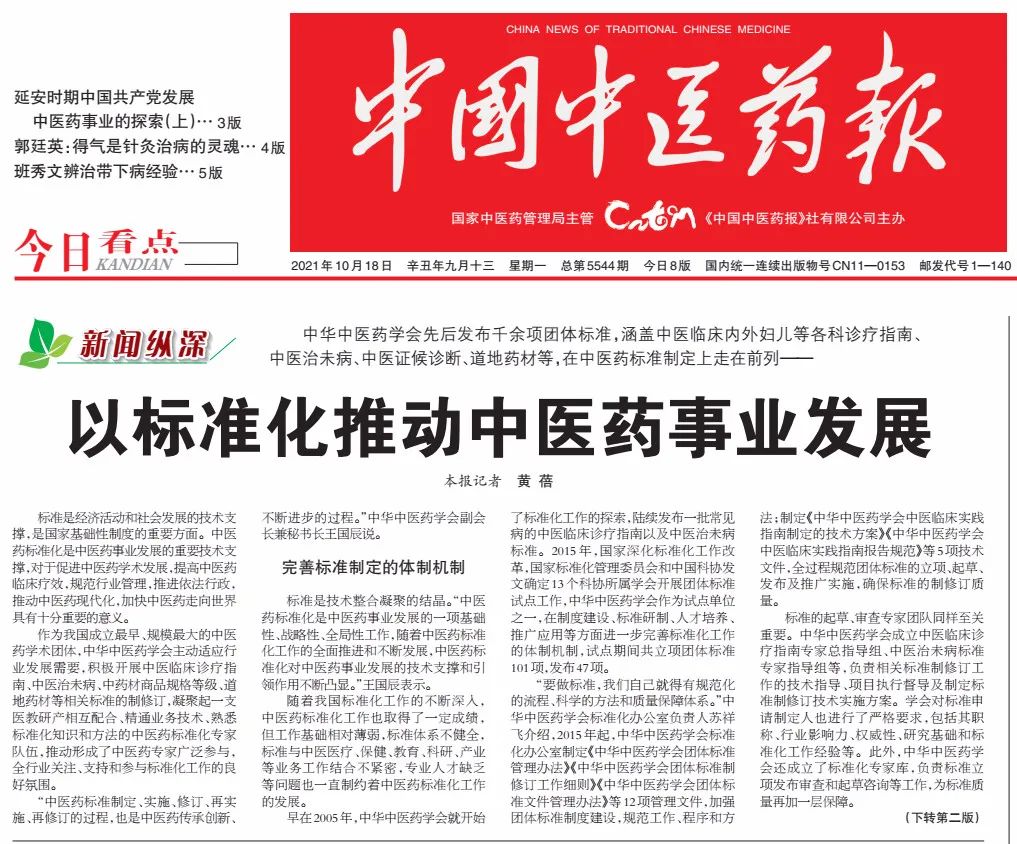 作為我國成立最早、規模最大的中醫藥學術團體,中華中醫藥學會主動適應行業發展需要,積極開展中醫臨床診療指南、中醫治未病、中藥材商品規格等級、道地藥材等相關標準的制修訂,凝聚起一支醫教研產相互配合、精通業務技術、熟悉標準化知識和方法的中醫藥標準化專家隊伍,推動形成了中醫藥專家廣泛參與,全行業關注、支持和參與標準化工作的良好氛圍。