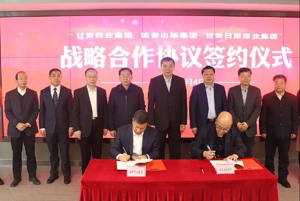 甘肅藥業集團和讀者出版集團有限公司、甘肅日報報業集團有限責任公司在甘肅新媒體集團舉行戰略合作簽約儀式,竇生銘代表集團公司簽署協議。