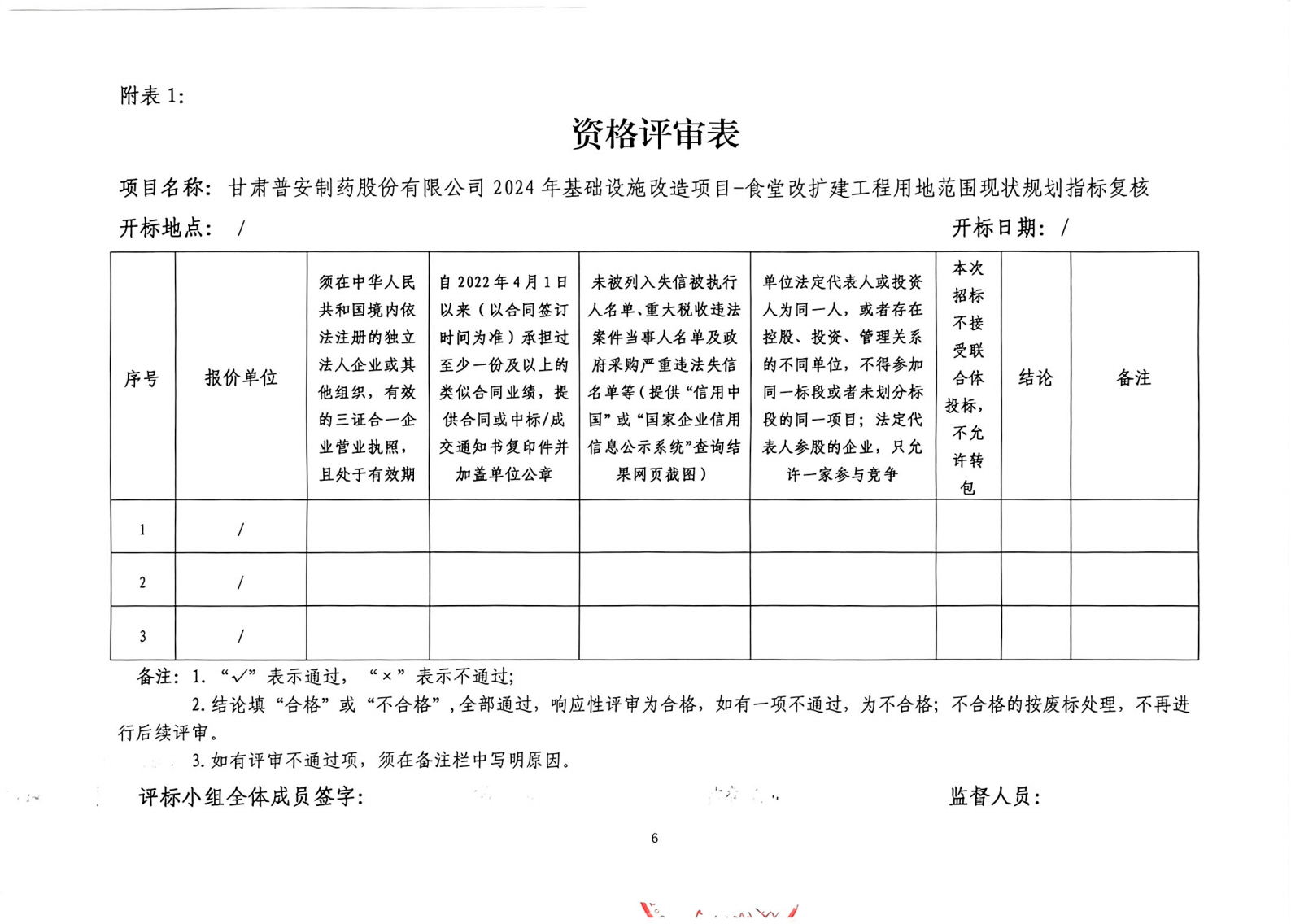 甘肅普安制藥股份有限公司2024年基礎(chǔ)設(shè)施改造項(xiàng)目-食堂改擴(kuò)建工程用地范圍現(xiàn)狀規(guī)劃指標(biāo)復(fù)核服務(wù)招標(biāo)公告