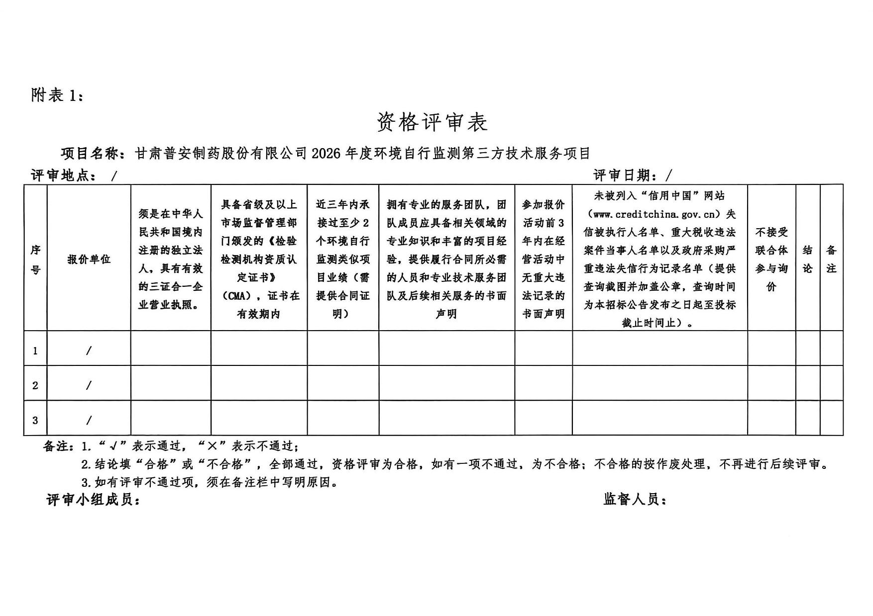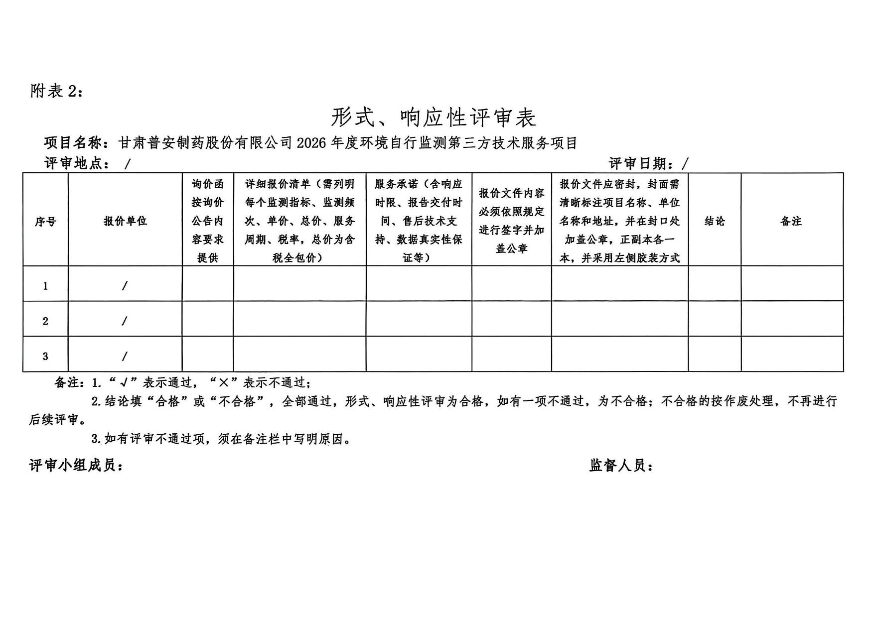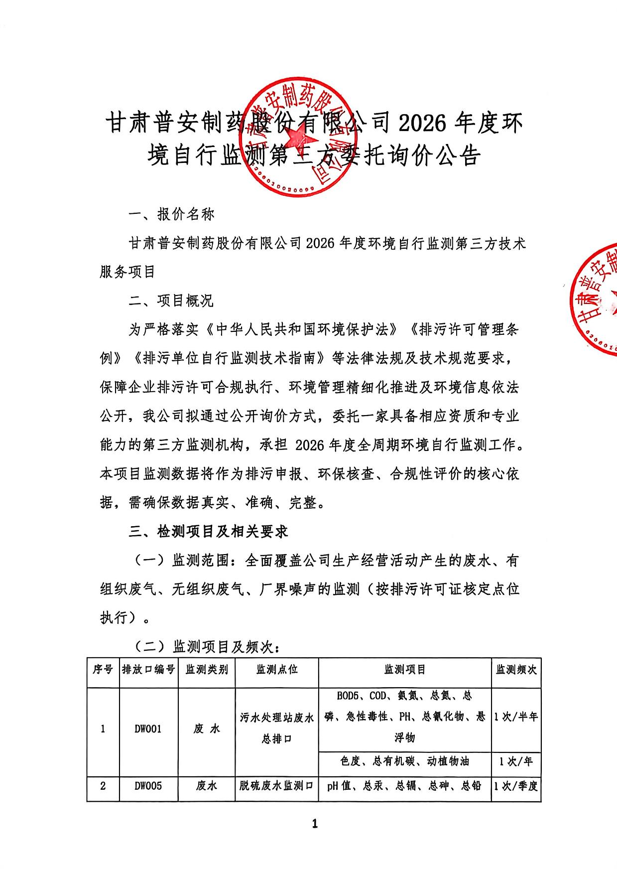 甘肅普安制藥股份有限公司 2026 年度環(huán)境自行監(jiān)測第三方委托詢價公告