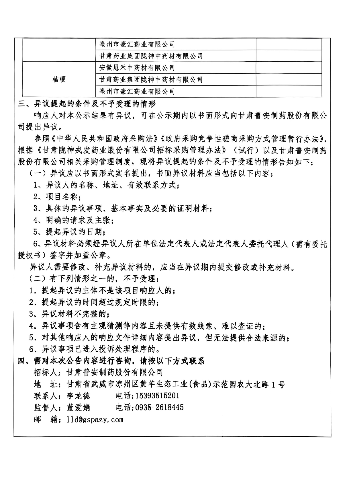 甘肅普安制藥股份有限公司2026年度宣肺止嗽合劑中藥材采購(gòu)成交單位公示