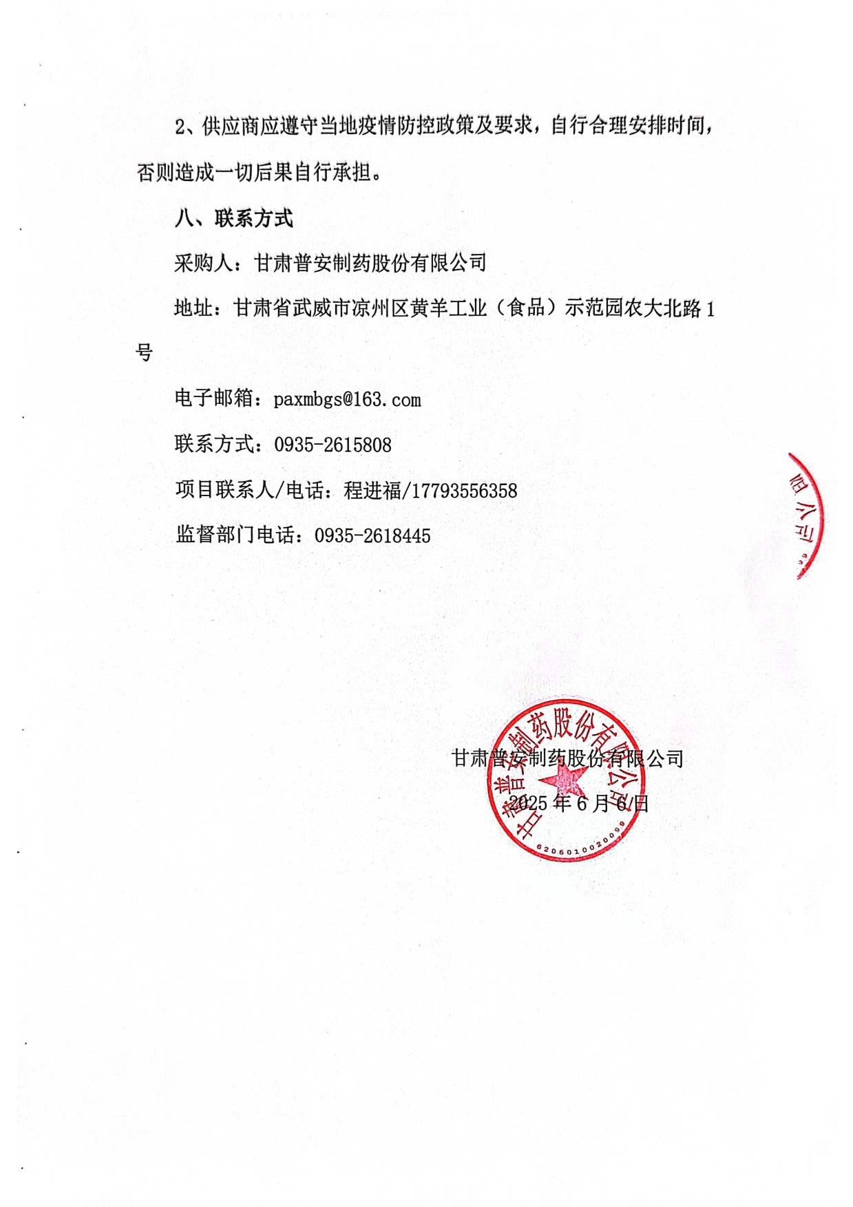 甘肅普安制藥股份有限公司2臺15噸燃煤蒸汽鍋爐外包運營服務競爭性磋商公告